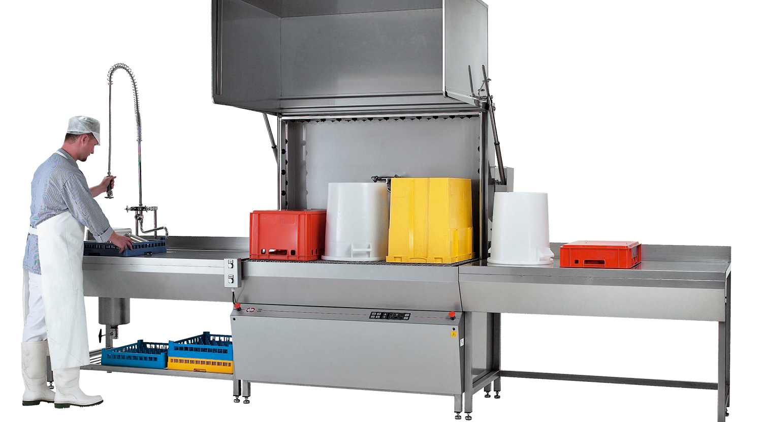 As we handle poultry and fish, we frequently need to clean crates, weighing systems, and packaging systems, which we remedy with JEROS commercial dishwashers and crate washers.
