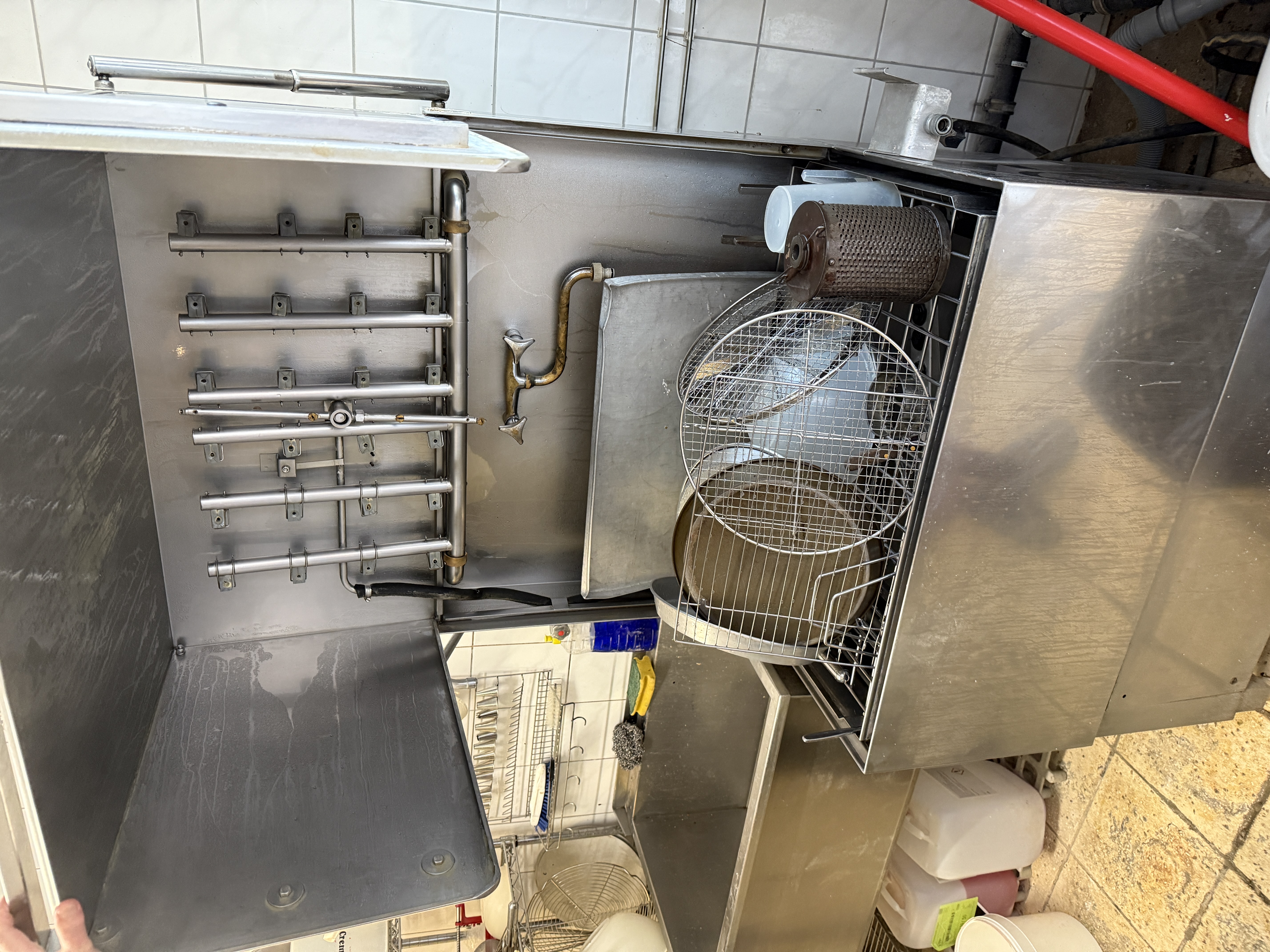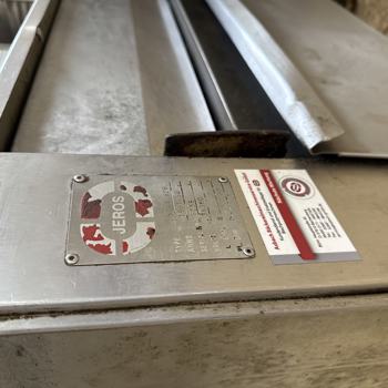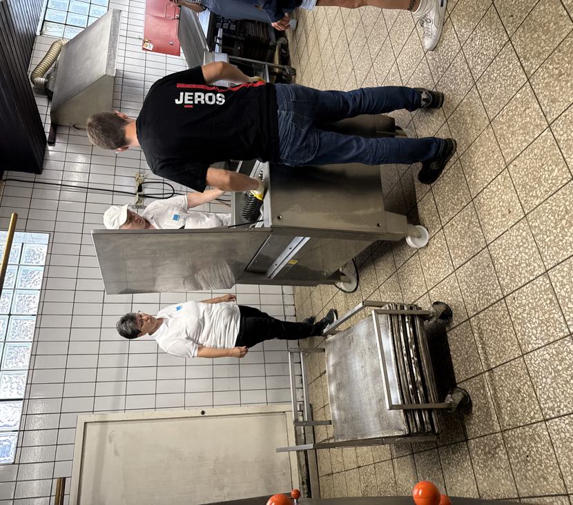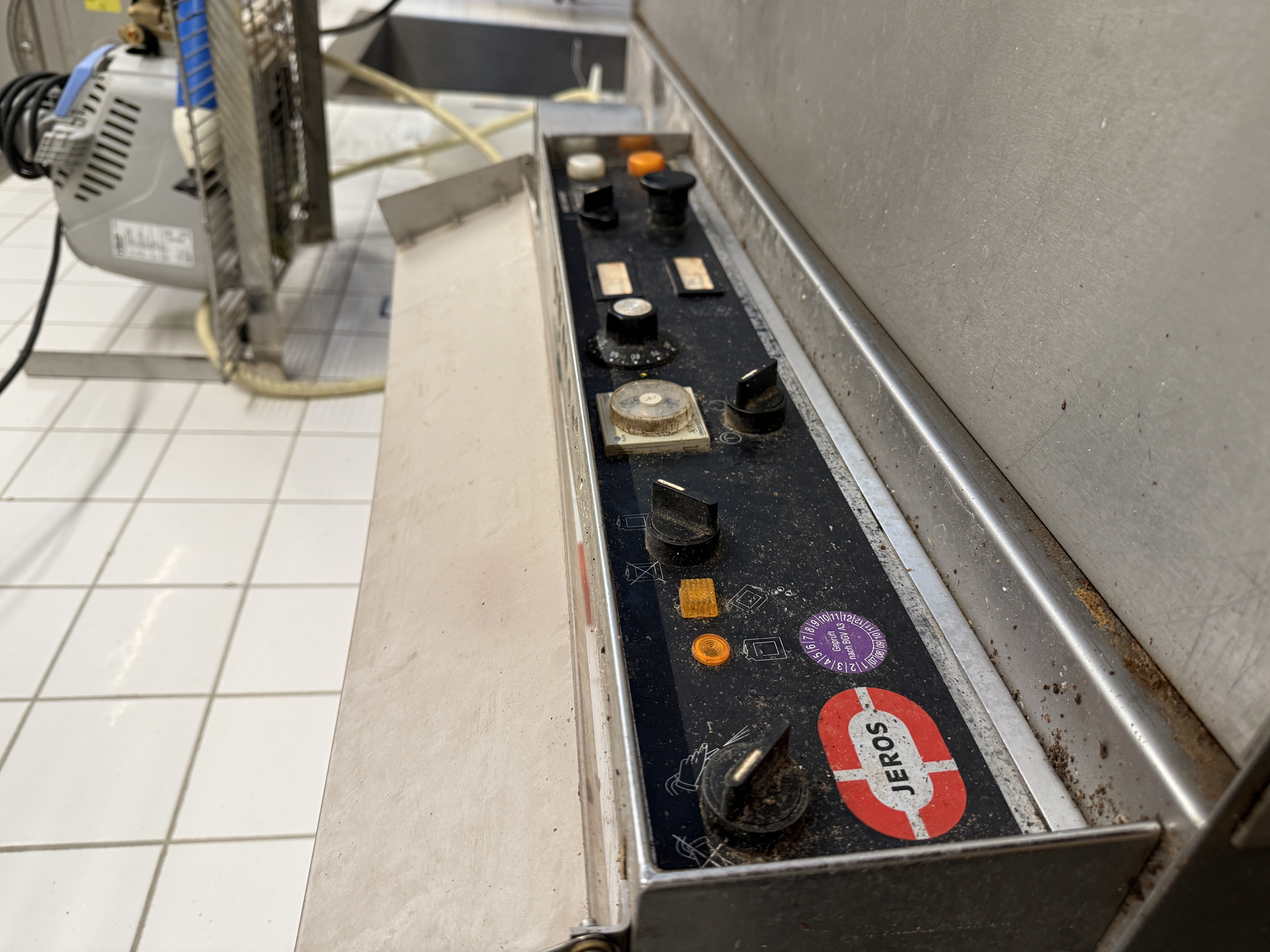 While touring the bakery, the JEROS team discovered another surprise: An older JEROS industrial dishwasher, Model 8120, which is still running smoothly and has never been officially registered with us.