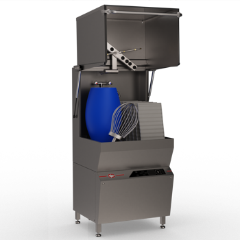 The impact-resistant and double-insulated lid reduces heat loss and minimizes energy consumption. The Model 9210 features a transparent inspection window, enabling the operator to easily verify that the wash and rinse arms are rotating correctly and that items are adequately positioned throughout the cleaning cycle. - Glass-Blasted Surfaces and New Wash Chamber
